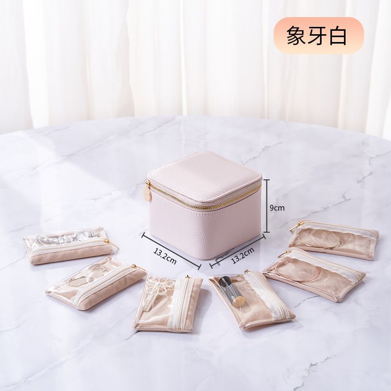 Lychee grain leather jewelry storage box, including 6 velvet transparent storage bags, can be carried separately or placed inside the jewelry box storage, to prevent jewelry oxidation affect the use.