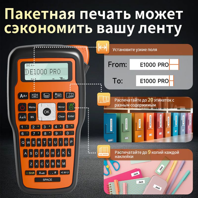 1, E1000 label maker printer can be used to label and organize construction site, electricity, factory, telecommunication, lab, postbox, fixed assets and others, including electricians, technicians, mechanics, outdoor operators, etc.;
