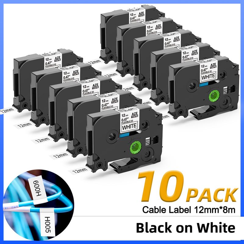 Standard set including: 1 printer + 1 12mm white label tape + 1 power cord + 1 instruction manual