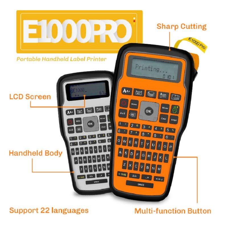 Portable Label Printer E1000PRO w/ Tube AHS231 631 Compatible for Brother Ptouch Handheld Label Maker Machine Industrial Labeler
