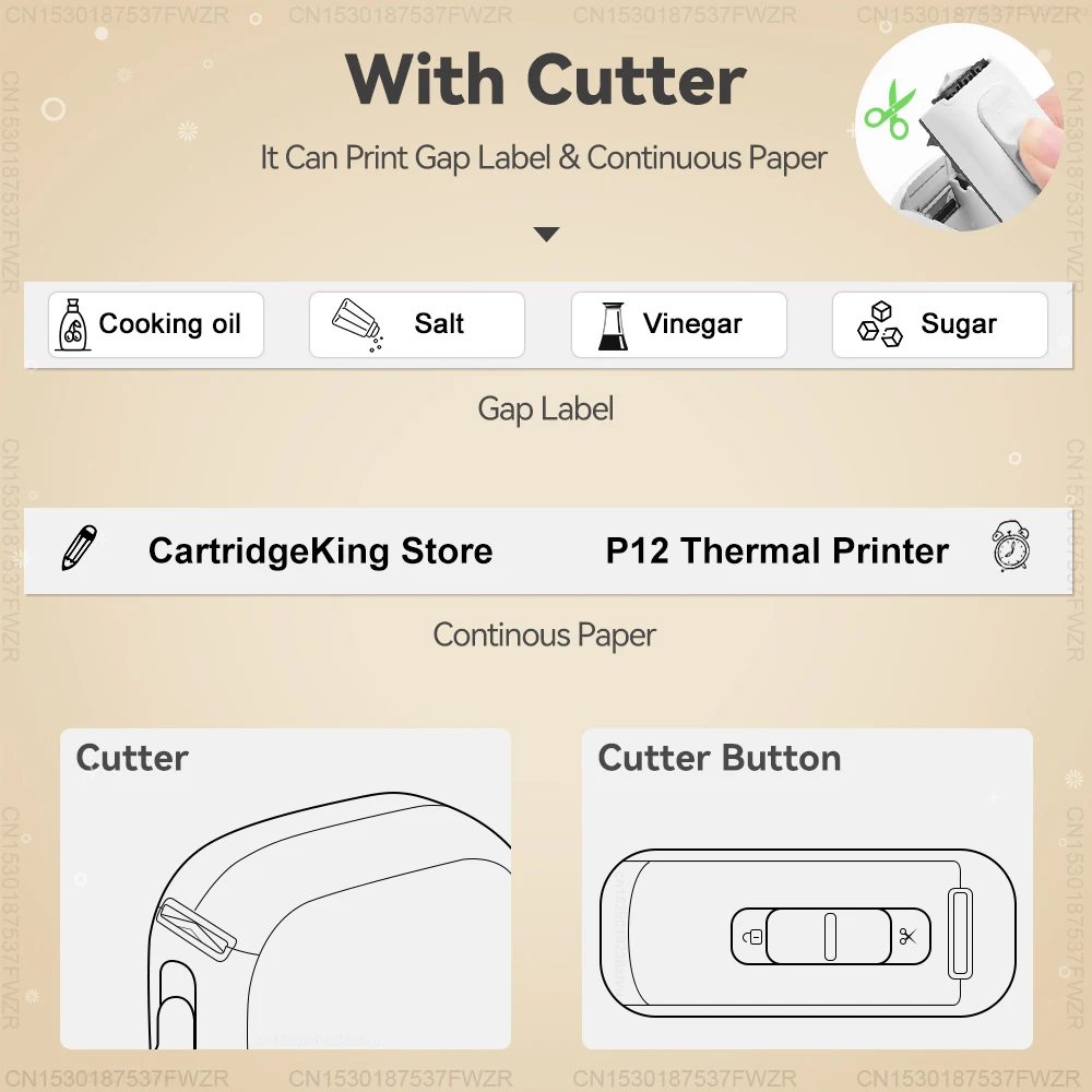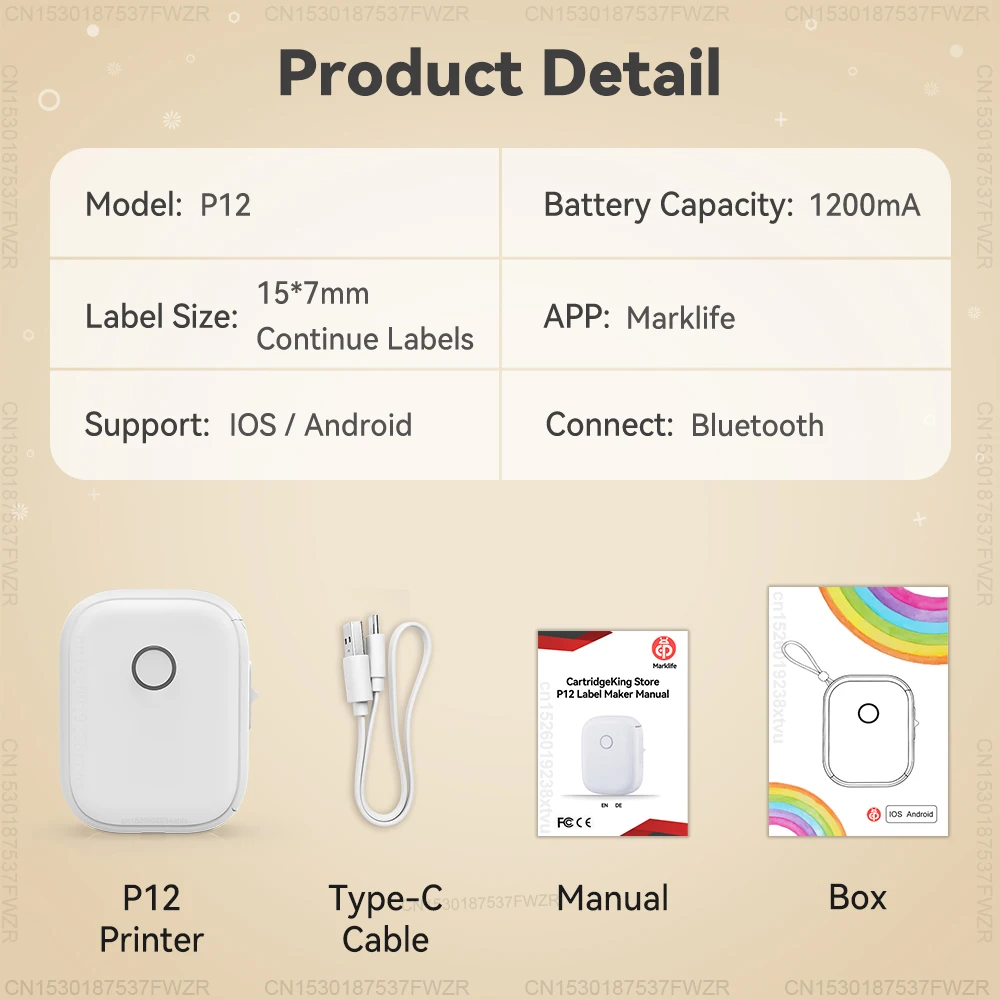 Marklife P12 Thermal Label Printer Auto Cut Portable Mini Printer P12 Adhesive Sticker Labeling Machine or 5PK Continuous Tape