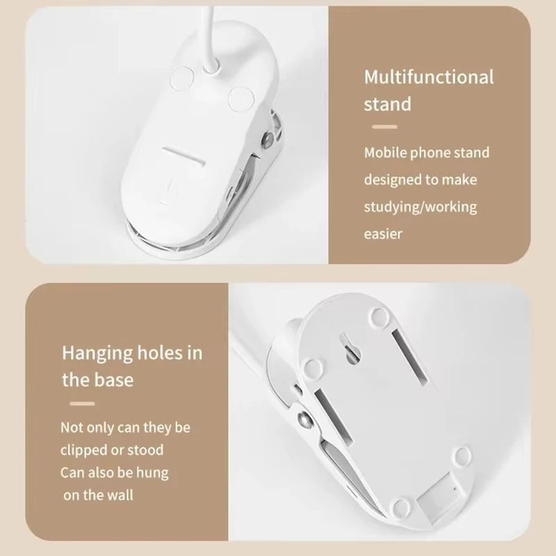 Portable LED Table Lamp USB Rechargeable NightLight With Folding Clamp Study Stand Read Lamp 3 Modes Dimming Eye ProtectionLight