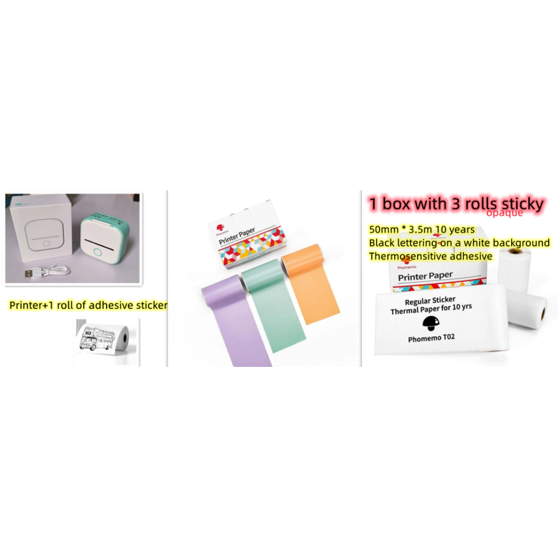 Yellow set: Yellow printer +4 rolls Sticky paper