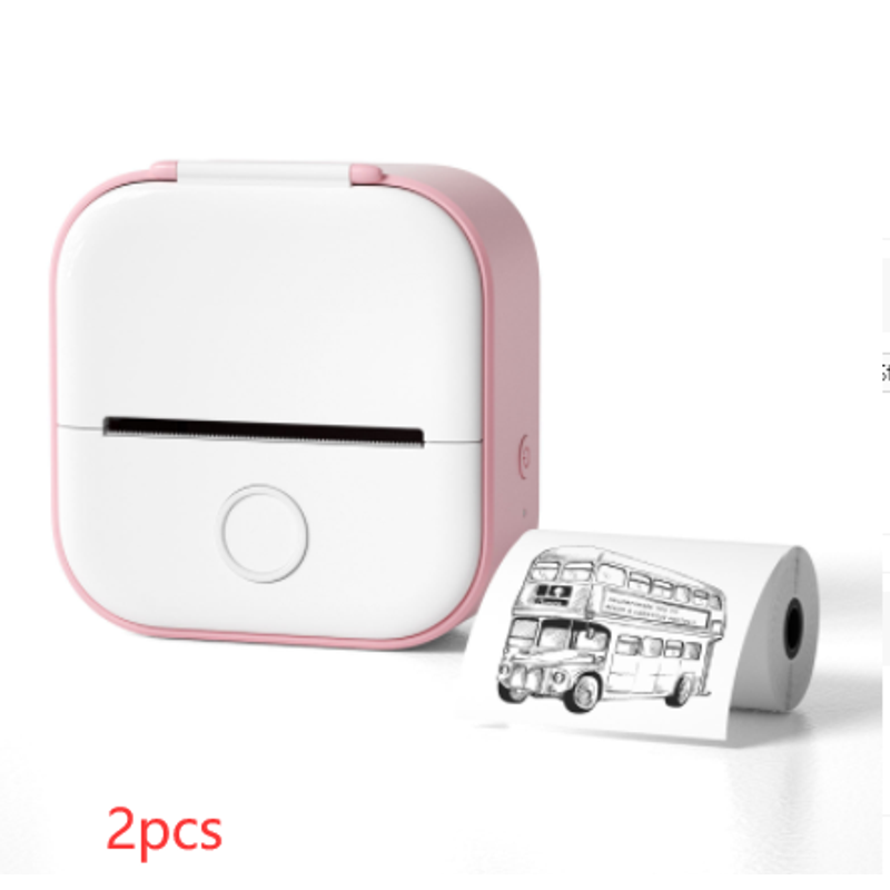 Portable Mini Thermal Label Printer Home Photo Printer Student Wrong Question Printer Bluetooth Mini Label Printer Price Tag Pink 2pcs USB