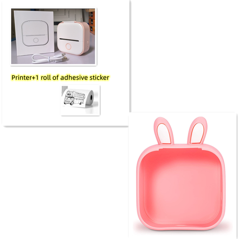 Portable Mini Thermal Label Printer Home Photo Printer Student Wrong Question Printer Bluetooth Mini Label Printer Price Tag Pink SetD USB
