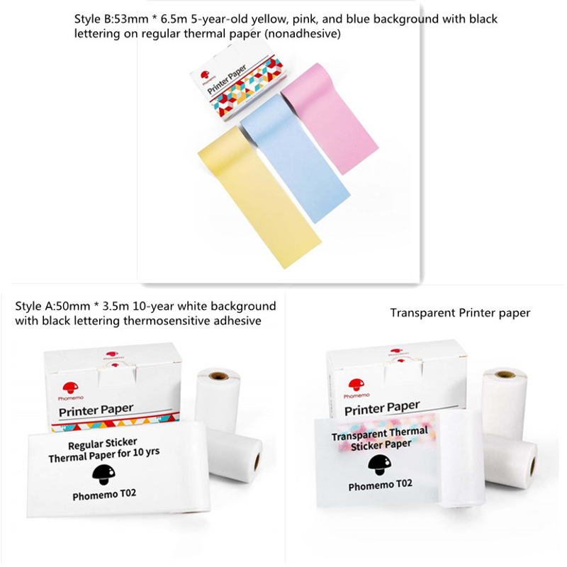 The Phomemo T02 series is a mini pocket printer that does not require ink. The independently developed app is more suitable for foreign users' usage habits. The app supports 10 languages (Chinese, Traditional Chinese, English, Japanese, Korean, Thai, French, German, Spanish, Portuguese) suitable for foreign trade styles. Apple iOS, Android download app, mobile Bluetooth link, built-in high-quality lithium battery, easy to carry, capable of printing images, text, errors, and supporting various specifications of label printing