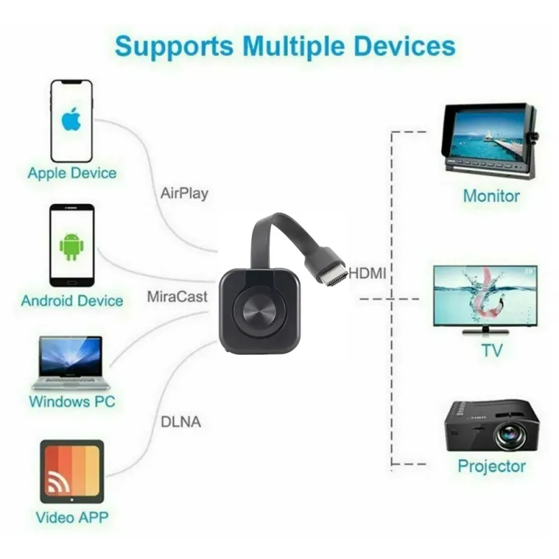 Compatible devices: Android smartphones/tablets, Apple devices, PCs, TVs, projectors