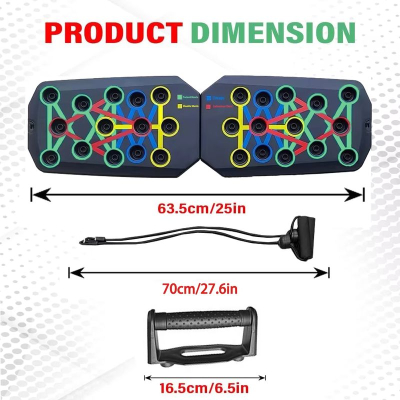 1. Different color-coded push plates focus on the muscles to be exercised.
