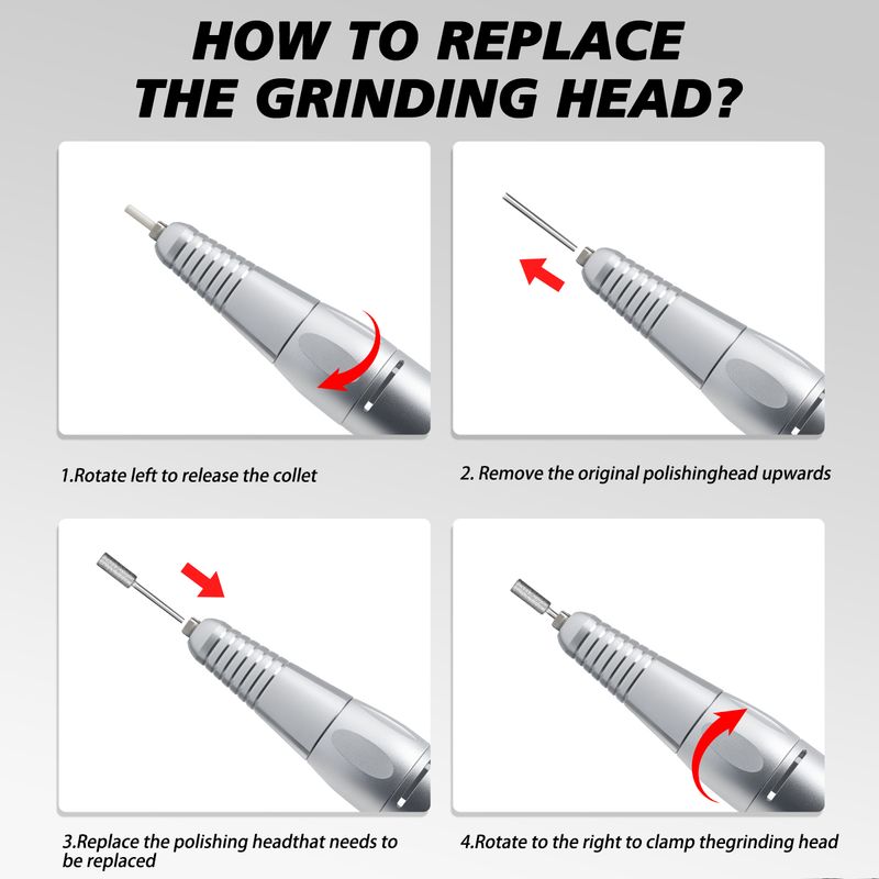 • Low Heat/Low Noise/Low Vibration: Quality aluminum alloy handpiece is made up of powerful yet quiet torque with smart heat dissipation and low vibration, comfortable to grip in hand, twists lock system makes it easy to change nail drill bits, this nail polisher machine provides you a safe and effective nail art experience