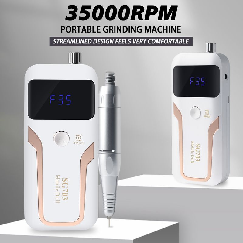 Portable Nail Drill Professional 35000 RPM, Rechargeable Electric Nail File Machine E File For Acrylic Gel Polishing Removing, Cordless E-File With Bits Kit For Manicure Salon Home
