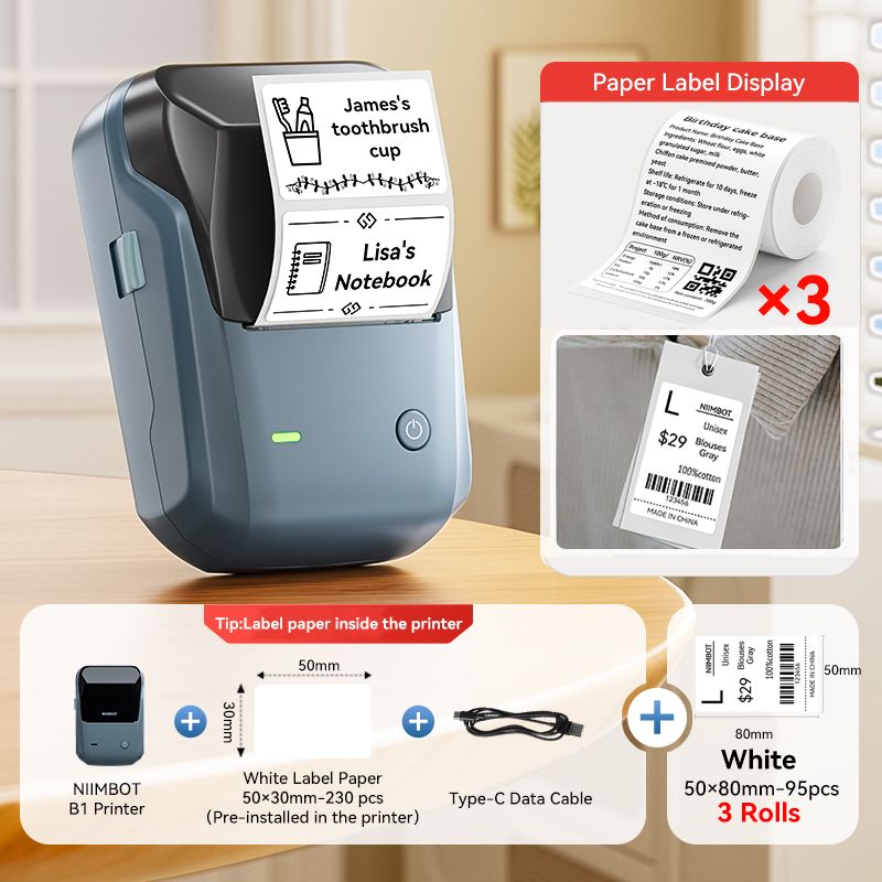 The B1 label maker can print 20-50 mm width label ,can print product labels, address labels, ingredient labels, price labels, clothing labels, jewelry labels etc.