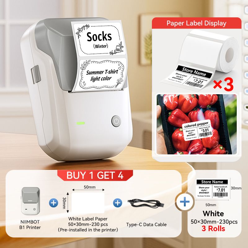 The B1 label maker can print 20-50 mm width label ,can print product labels, address labels, ingredient labels, price labels, clothing labels, jewelry labels etc.