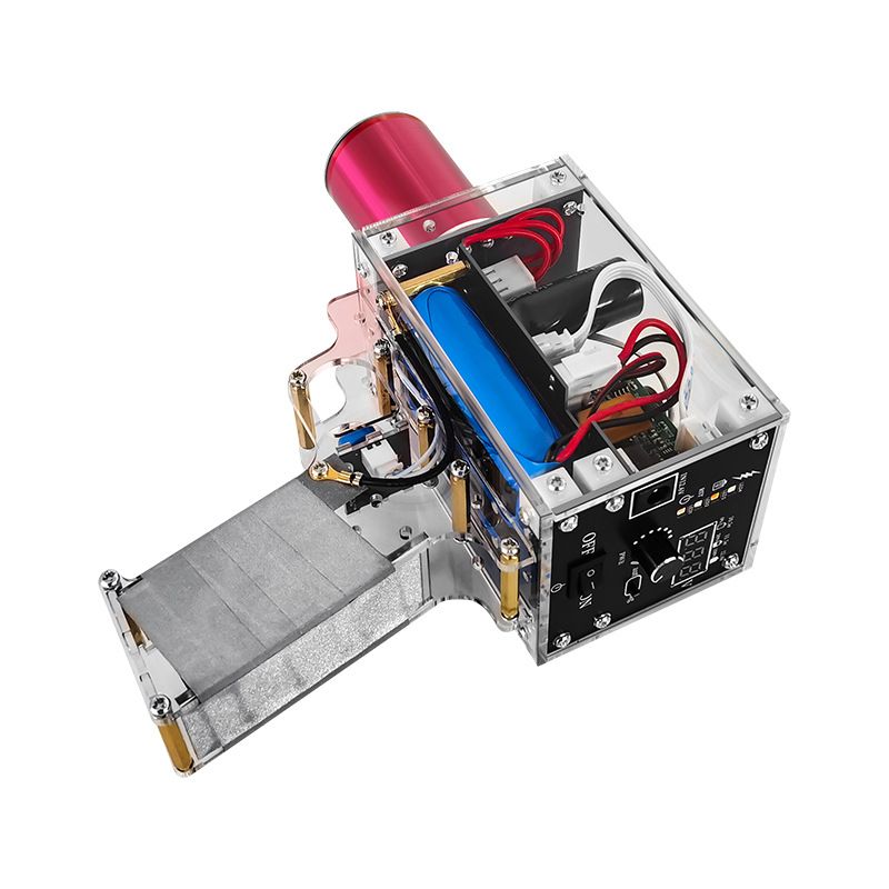 The hand-held Tesla coil is a portable portable portable artificial lightning generator. Its shell is made of fully transparent acrylic plate by hand; With a 12.6V Panasonic 2200mAh large-capacity lithium battery pack for power supply, it can generate more than 1700 beautiful artificial lightning flashes with a length of more than 13cm, which has a good performance in terms of effect and endurance. This product adopts the pull single trigger mode, and does not have the function of automatic trigger and music playback.