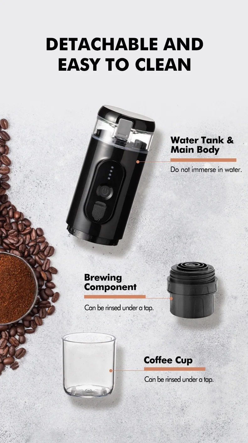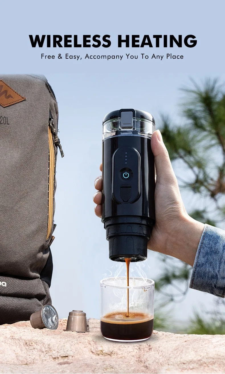 Wireless heating electric espresso coffee machine powder capsule charging portable outdoor travel car home
