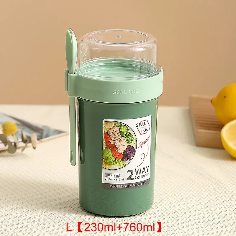 Portable Salad Cups Container Plastic with Lid and Fork Overnight cup Breakfast Oatmeal Cereal Nut Yogurt Cup School Lunch Box