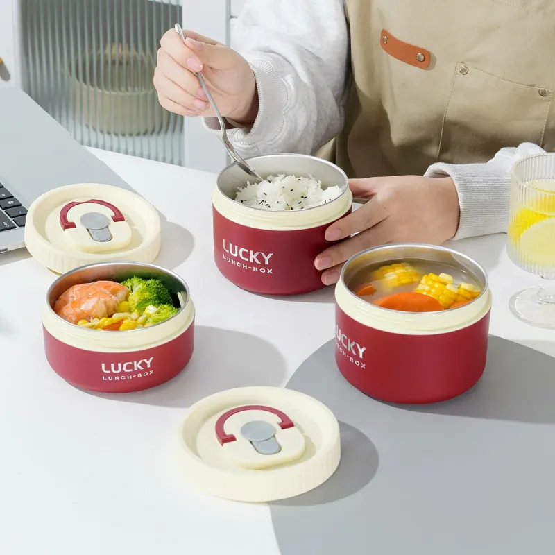 Portable sealed stainless steel insulated lunch box, insulated tableware, salad food container, heated soup bowl, microwave oven