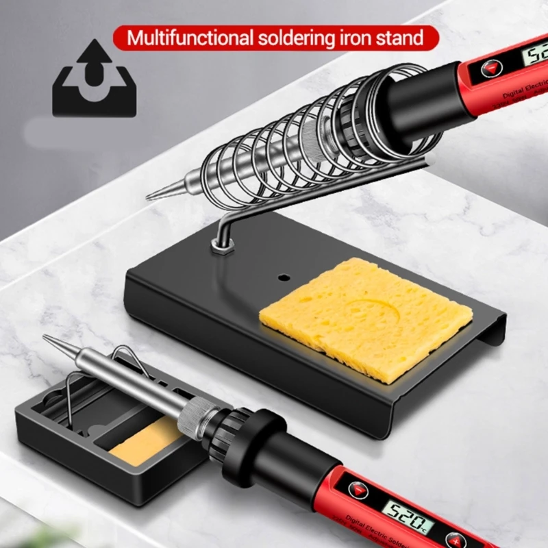 This soldering iron stand has modern designed. Its lines are smooth, and its size is moderate, making it easy to place on any work surface without taking up too much space.