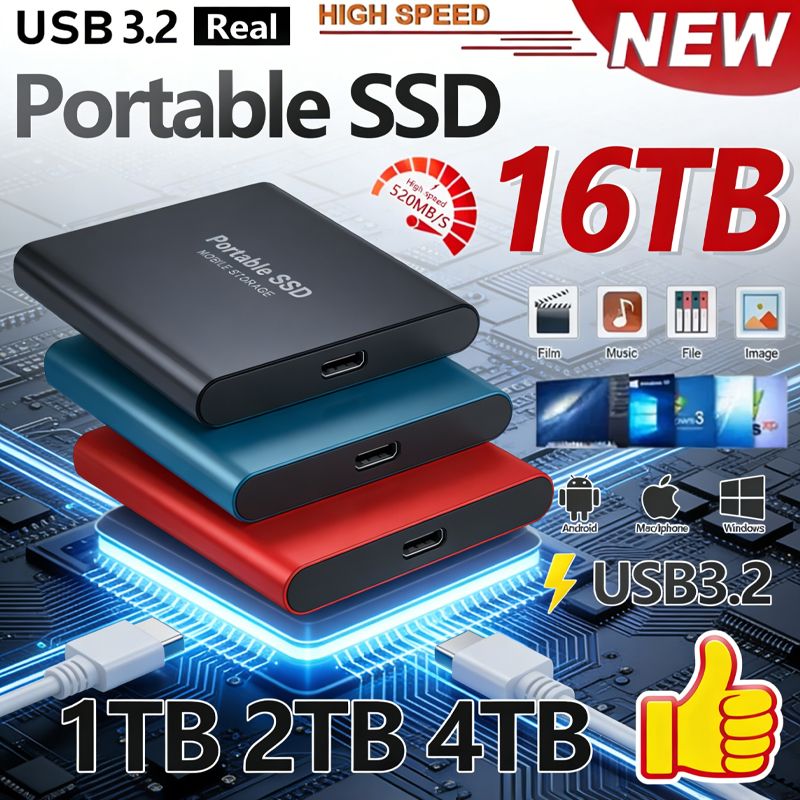 Portable SSD 1TB Original External Hard Drive USB 3.1 Type-C High Speed Solid Disk 2TB 4TB Mass Storage for Phone/Loptop/Mac/PC