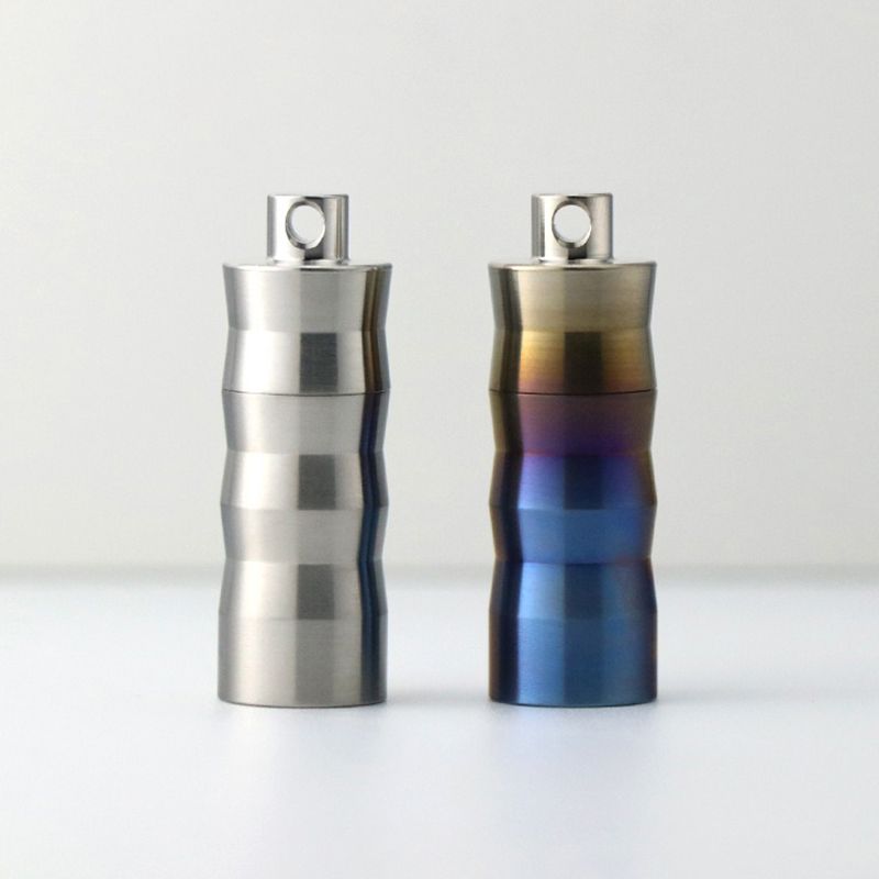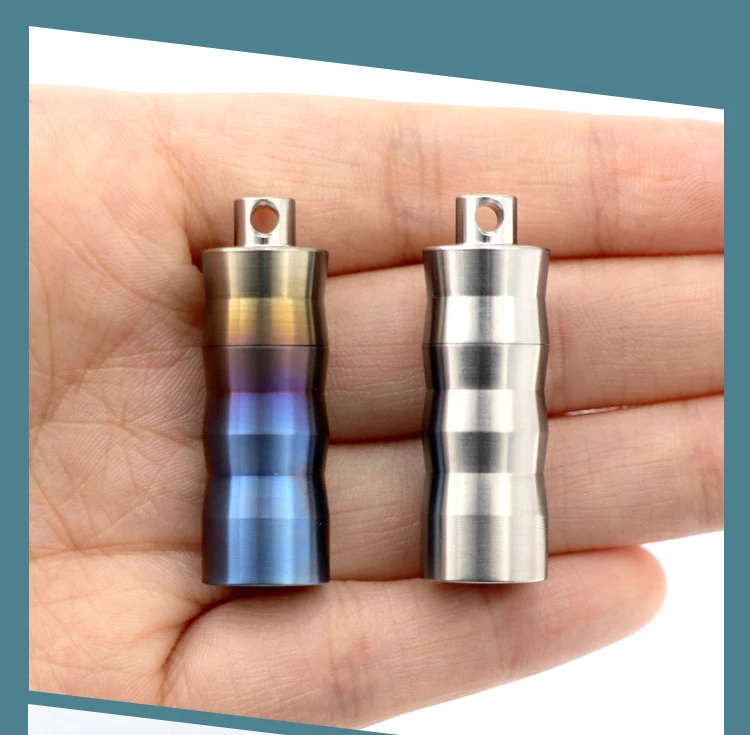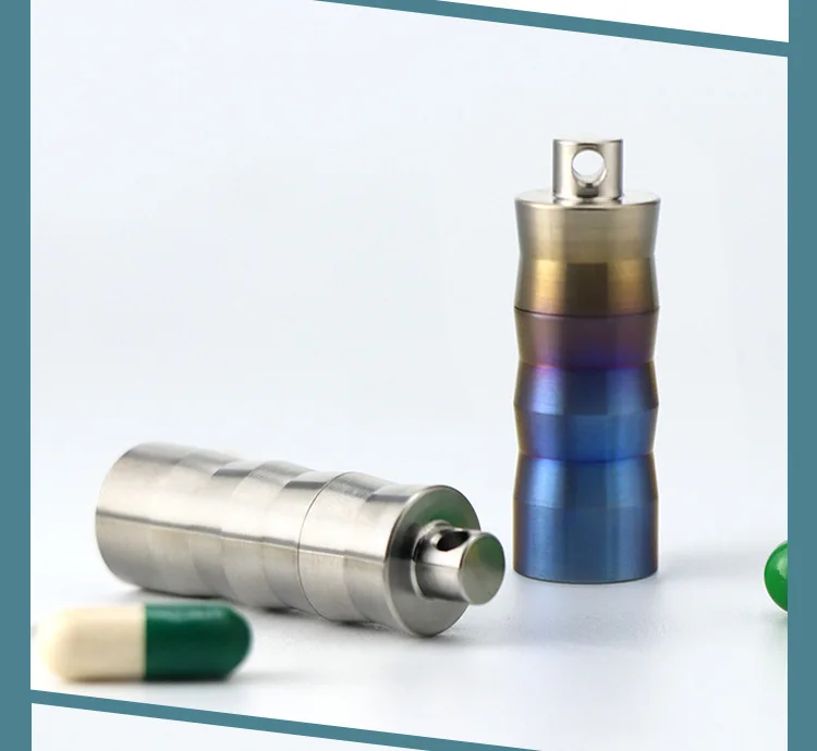 Portable Titanium Pill Box Keychain - Waterproof Mini Sealed Container for Travel, Outdoor & Emergency Medicine Storage (T5) Blue/Natural