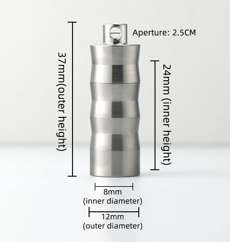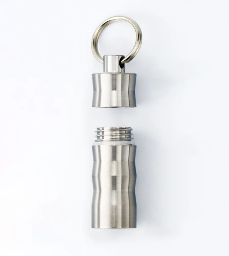 Weighs only 9g! Features a drilled top for attaching chains/keyrings (free keyring included). Perfect as a pill case, perfume vial, or jewelry holder.