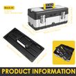 Double Layer Large Capacity Design : The toolbox comes with a removable tray , forming an upper and lower double layer partition structure . It easily holds electrical tools , repair accessories , sewing supplies and other small items . Classified storage makes organization more efficient , deleting clutter and enabling easy access