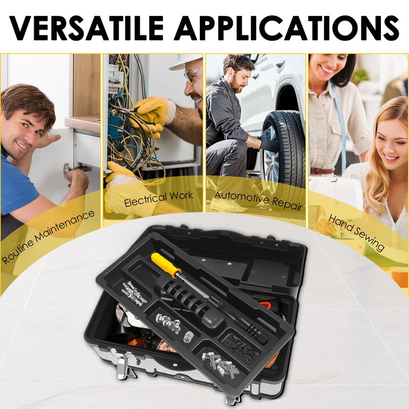 Multi Scene Application : This toolbox meets multiple needs , specially designed for scenarios like daily home maintenance , electrical work , car emergency repairs and hand sewing . It's an ideal choice for DIY enthusiasts and professionals