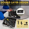 Double Layer Large Capacity Design : The toolbox comes with a removable tray , forming an upper and lower double layer partition structure . It easily holds electrical tools , repair accessories , sewing supplies and other small items . Classified storage makes organization more efficient , deleting clutter and enabling easy access