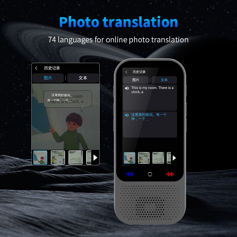 Online translation :Arabic, German, Russian, French, Korean, Japanese, Thai, Spanish, English, Chinese (Traditional), Chinese (Simplified) more than 138 online voice translation