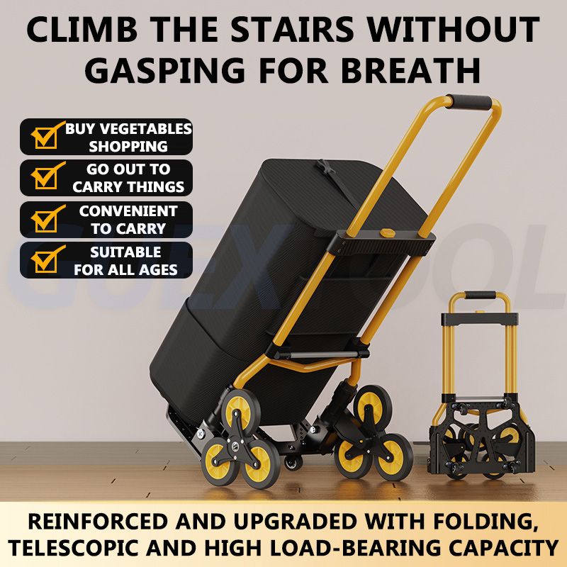 Portable Trolley Cart For Upstairs Cargo Folding Outdoor Portable Lightweight Step Climbing Travel Folded Trolley Grocery Cart