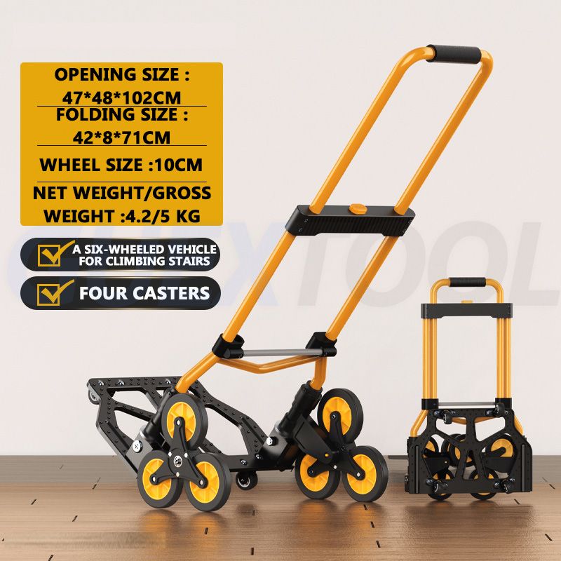 Portable Trolley Cart For Upstairs Cargo Folding Outdoor Portable Lightweight Step Climbing Travel Folded Trolley Grocery Cart