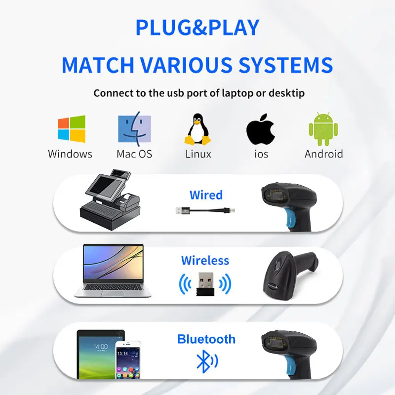 Excellent performance, quickly identify 1D/2D code, Paper code, Screen code, Plastic code, and irregular code, such as reflective code, distorted code, fuzzy code, damaged code, etc.