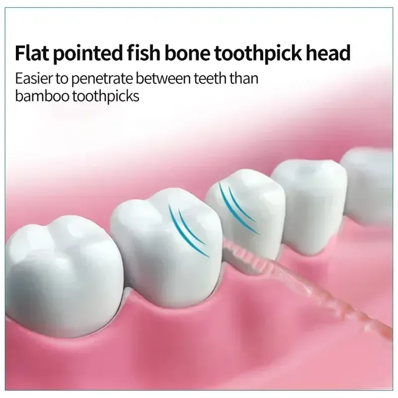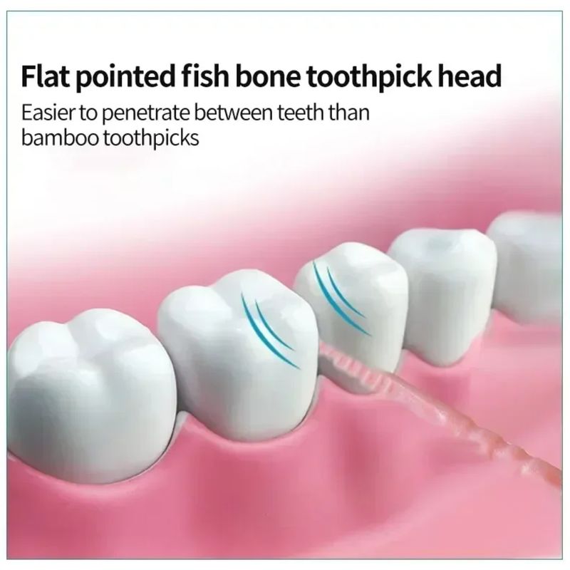 • Double Head :The toothpick has two heads, allowing you to pick up and remove food particles from hard-to-reach areas in your mouth.