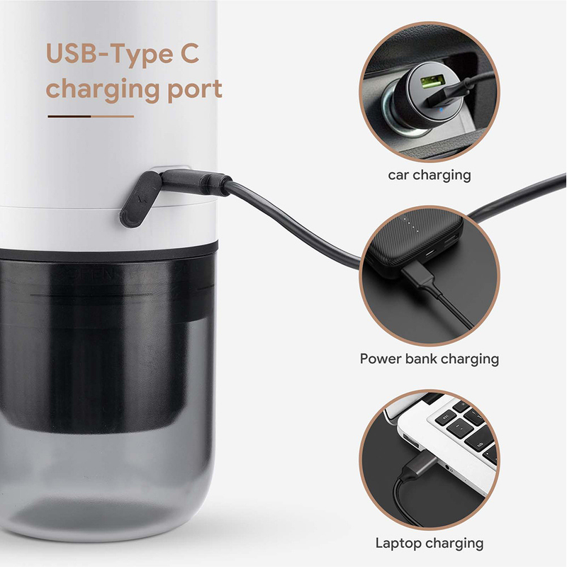 • USB Rechargeable: Built-in 2600mAh lithium battery supports brewing up to 80 cups per full charge.