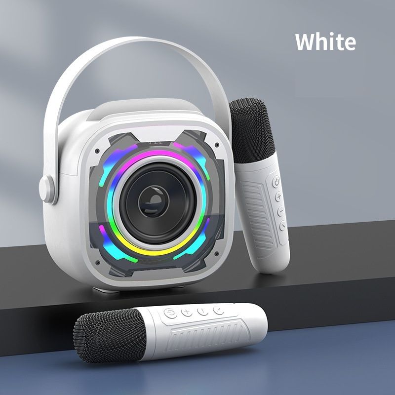 Portable Wireless Bluetooth Speaker With Microphone Integrated Karaoke Speaker V11 White Single Microphone