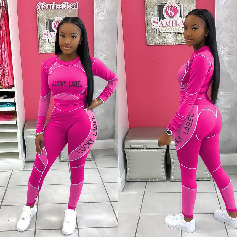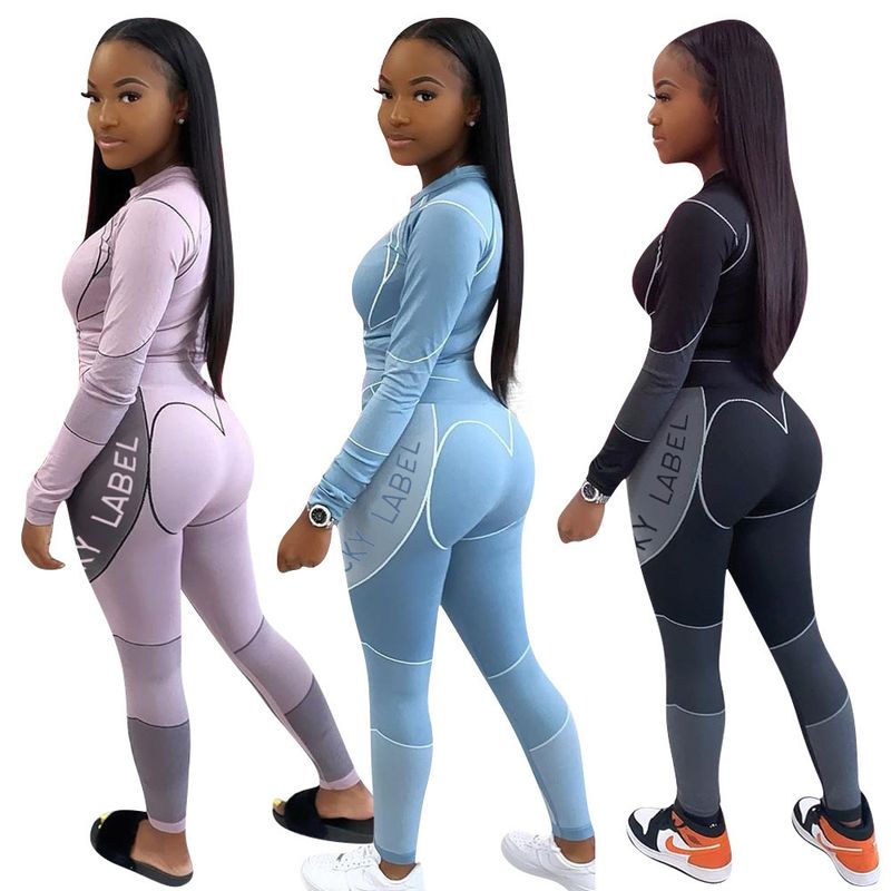 Positioning letter print long sleeve casual sports suit Light purple S