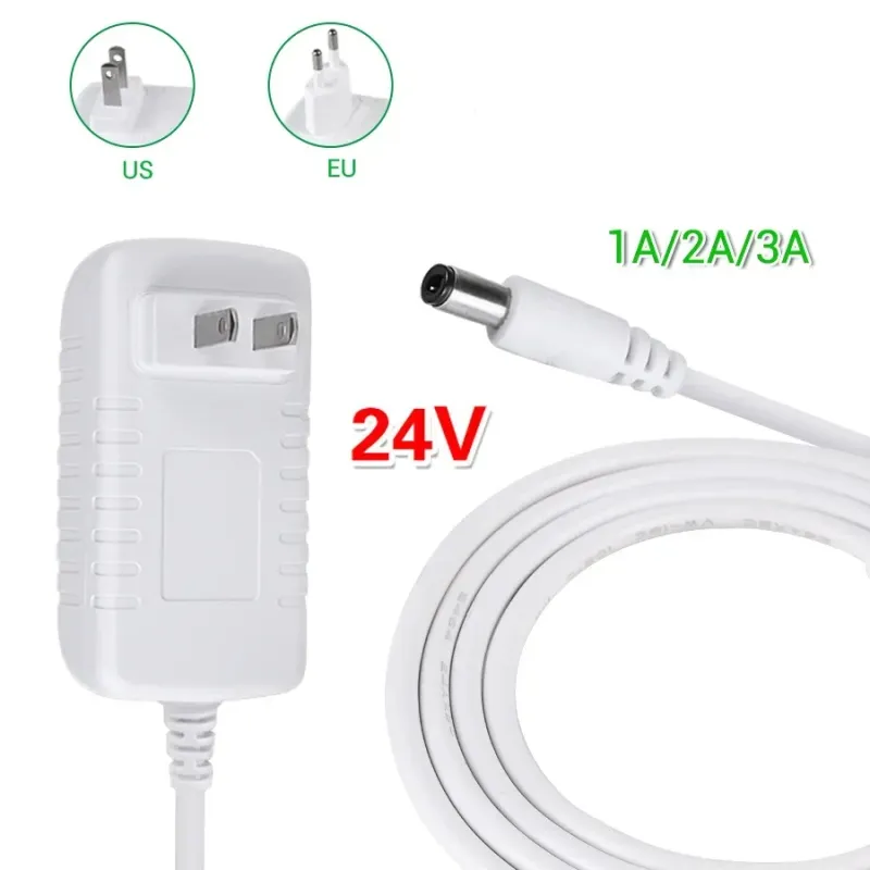 Power Plug Output Connector 5.5mm*2.1mm Power Transformer DC 24V 12V 1A 2A 3A EU US Plug White Housing LED Light Power Adapter