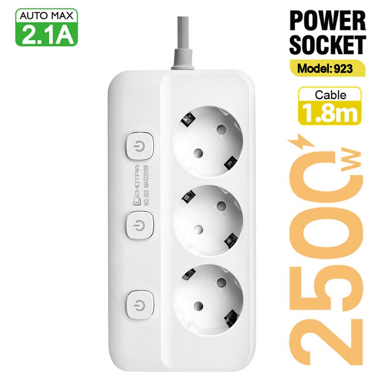 Power Strip EU Plug AC Outlets Multitap Socket 1.8m Extension Cord Electrical Independent Control Switch Network Filter Adapter