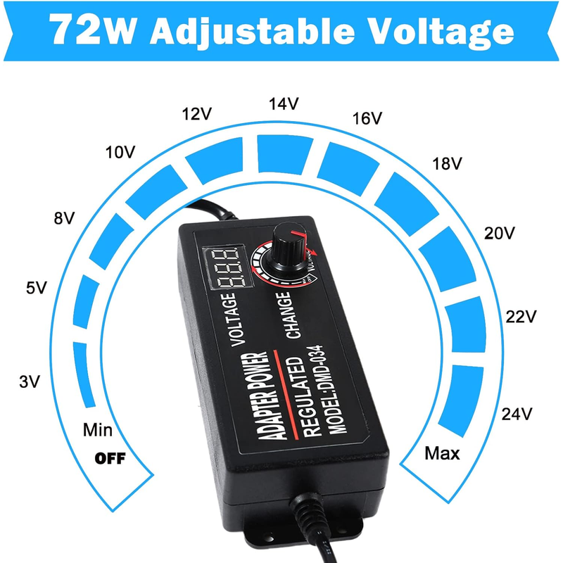 Power Supply Adjustable Adapter AC DC 12V Volt LED Display Screen Power 220V TO 3V 5V 9V 12V 24V 36V With DC Jack Connector Plug
