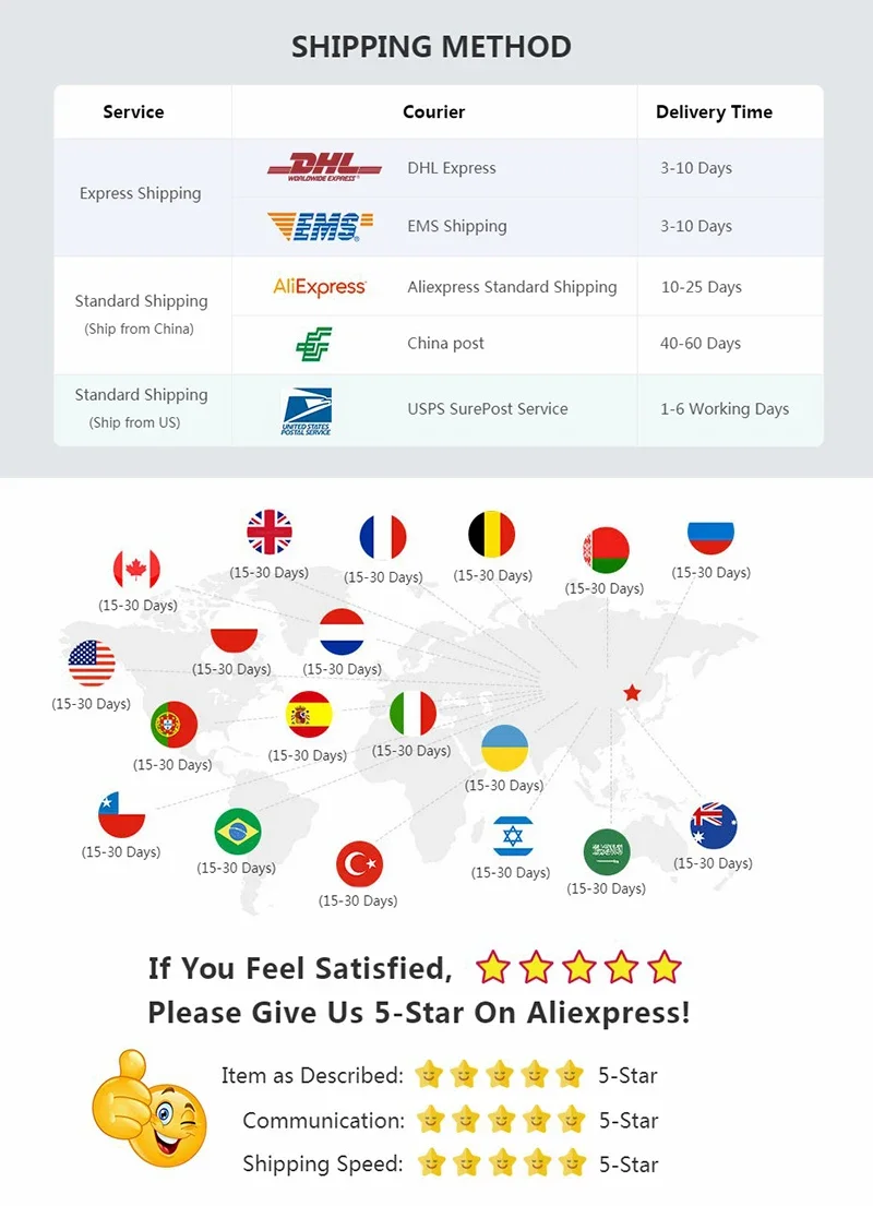 Please note that delivery times are estimates and may vary due to customs procedures, carrier delays, weather conditions, or other unforeseen circumstances.