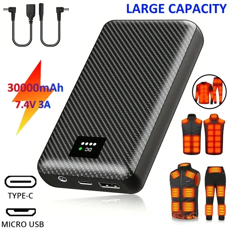 30000mAh Huge Capacity: Large enough capacity battery support up to heat up quickly in 3 seconds, give you long-lasting warmth.