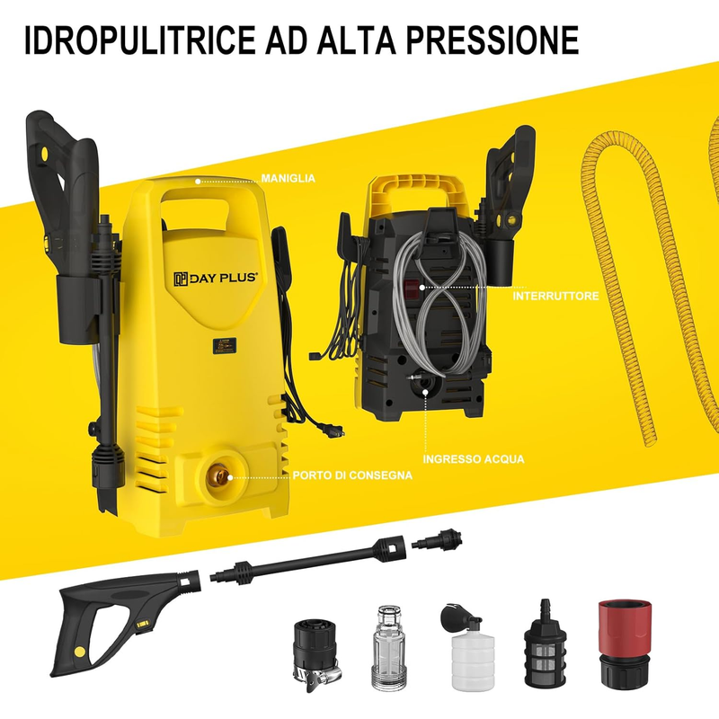 【Package includes】Hydrocleaner * 1, water inlet hose 2M * 1, filter * 1, water outlet hose 7M * 1, extension rod * 1, adjustable nozzle * 1, foam bottle * 1, quick connector * 1. If you have any questions, please feel free to contact us and we will reply within 12 hours!