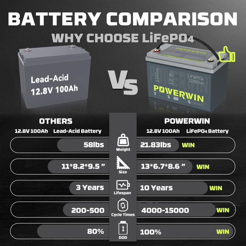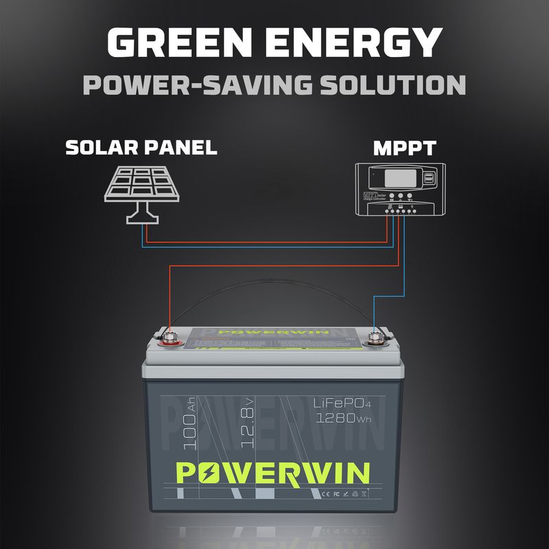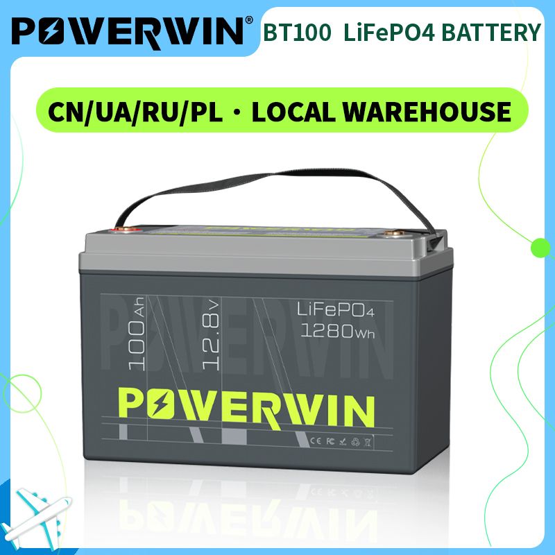 POWERWIN 12.8V 100Ah LiFePO4 Battery BT100 1280Wh Local Warehouse Deep Cycle Grade A Battery for Solar RV Shipping not included