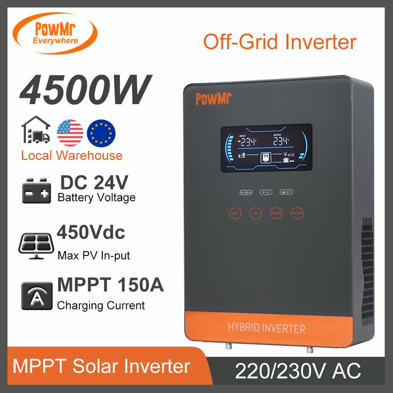 PowMr 4.2KW 4.5KW 6.2KW 6.5KW Hybrid Power Inverter MPPT Solar Charge DC 24V 48V to 230V AC Pure Sine Off-Grid Support LiFePo4