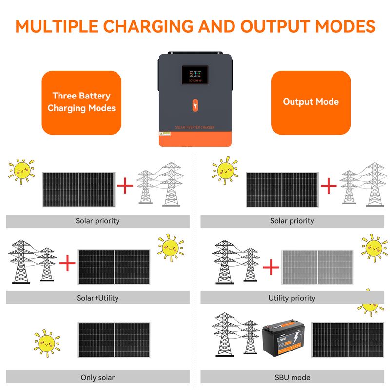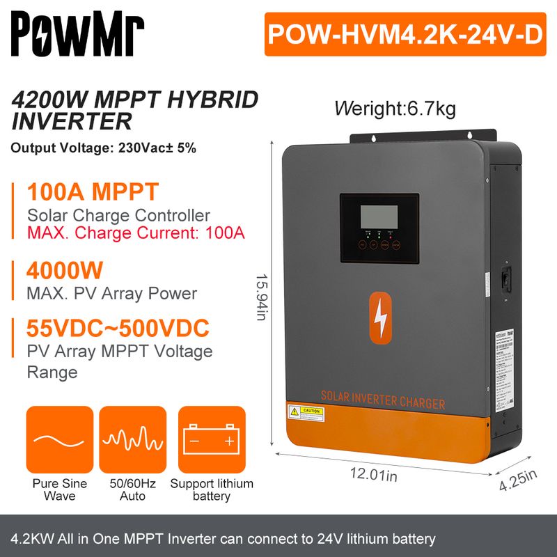 PowMr 6.2KW 4.2KW Off-Grid Hybrid Solar Inverters 48V 24V to 230VAC MPPT 120A Solar Charge Controller Low Start PV 55/60VDC