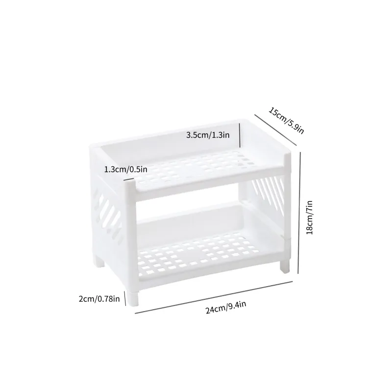 PP Desktop Double Layer Storage Rack Rectangular White Organizing Student Desk Office Cosmetics Stationery Shelf