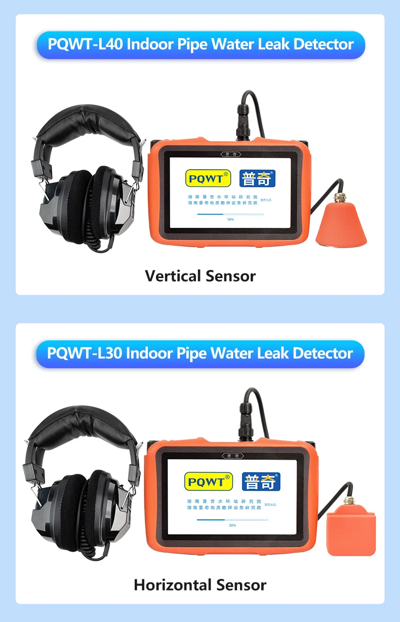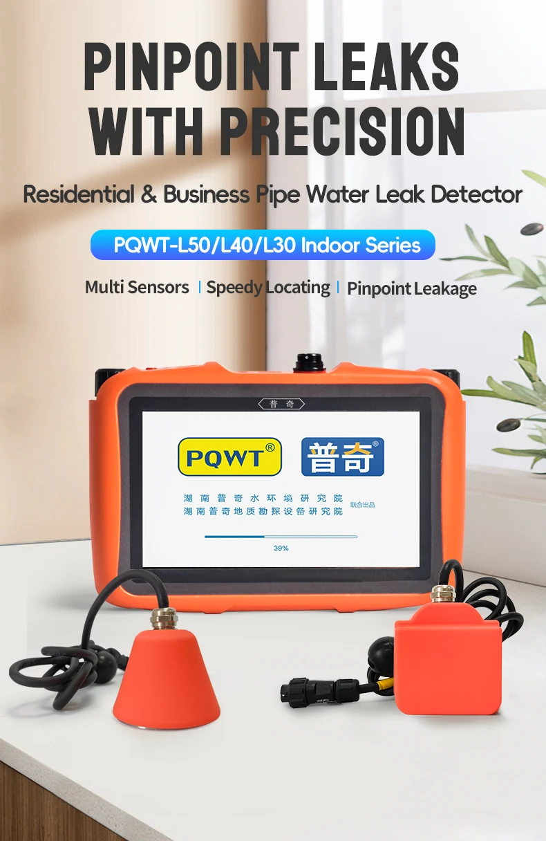 PQWT L series water leak detector for indoor underground and in-walls pipeline leak detection. Multi-sensor outdoor and indoor pipeline leak detection series, a new generation of intelligent leak detection equipment independently developed by PQWT, specifically for leaking pressure pipes. It is suitable for water leakage detection of outdoor water pipe, fire pipe, heating system, indoor water pipe and underground heating floor pipe. By collecting and analyzing leakage signal, it can locate the water leakage position and solves the problem of pressure pipe water leak.