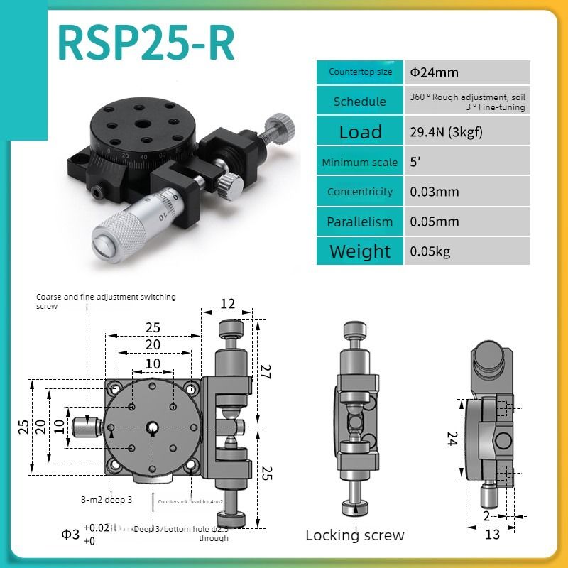 Precision Fine-Tuning Rotary Stage RSP25/60/80 R-Axis Manual Optical Rotating Worktable for Optical Equipment
