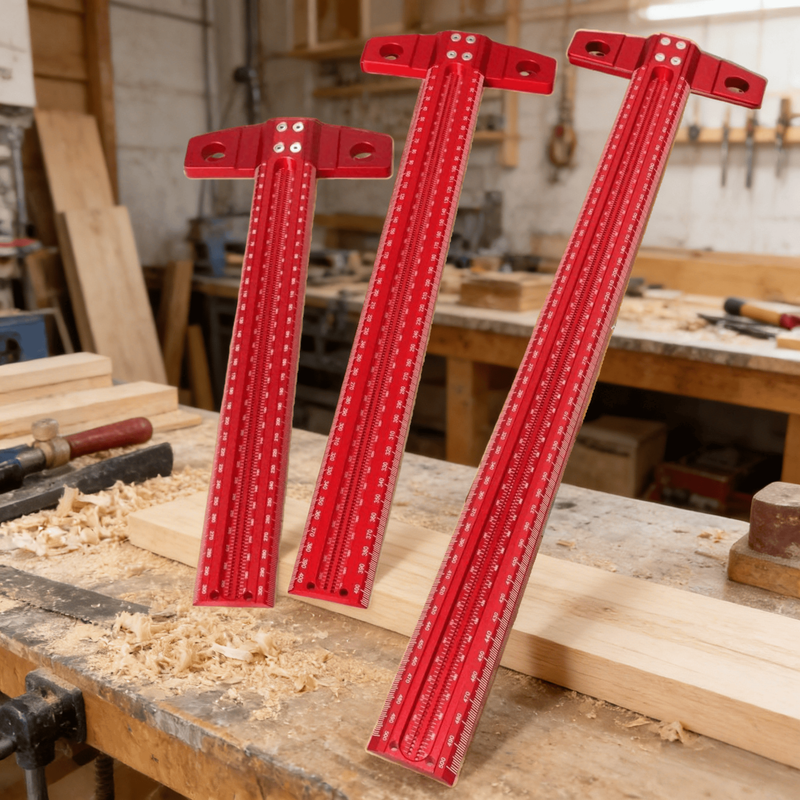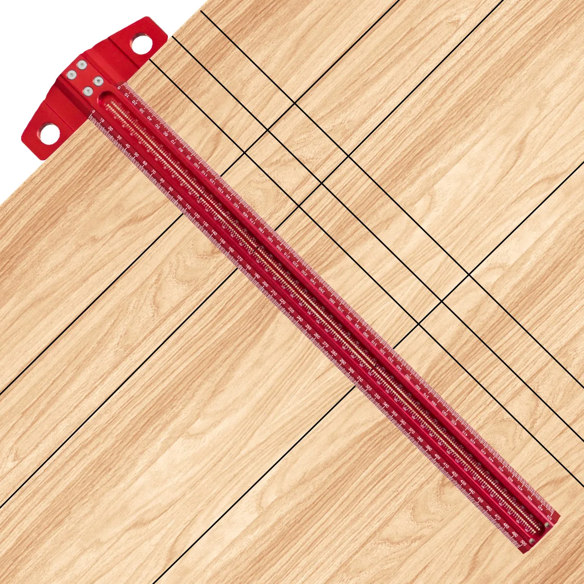 60-500MM T-Ruler Precision Marking Aluminum Alloy Woodworking Scribe Marking Gauge Crossed-out Hole Scribing Ruler MeasuringTool