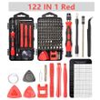 【122 in 1 Multifunction Screwdriver Kit】The 122 in 1 screwdriver set includes 98 screwdriver bits, 3TorxTR screwdriver bits, 1 magnetized driver handle, 1 magnetizer/demagnetizer, 1 flexible extension shaft, 1 hard extension shaft,1 hexagonal sleeve socket for cordless drills, 1 anti-static tweezer, 3 plastic pry crowbars,3 ultra-thin & 6 normal triangle pry tools, 1 micro screw magnetic pad, 1 SIM card pin and 1 suction cup.