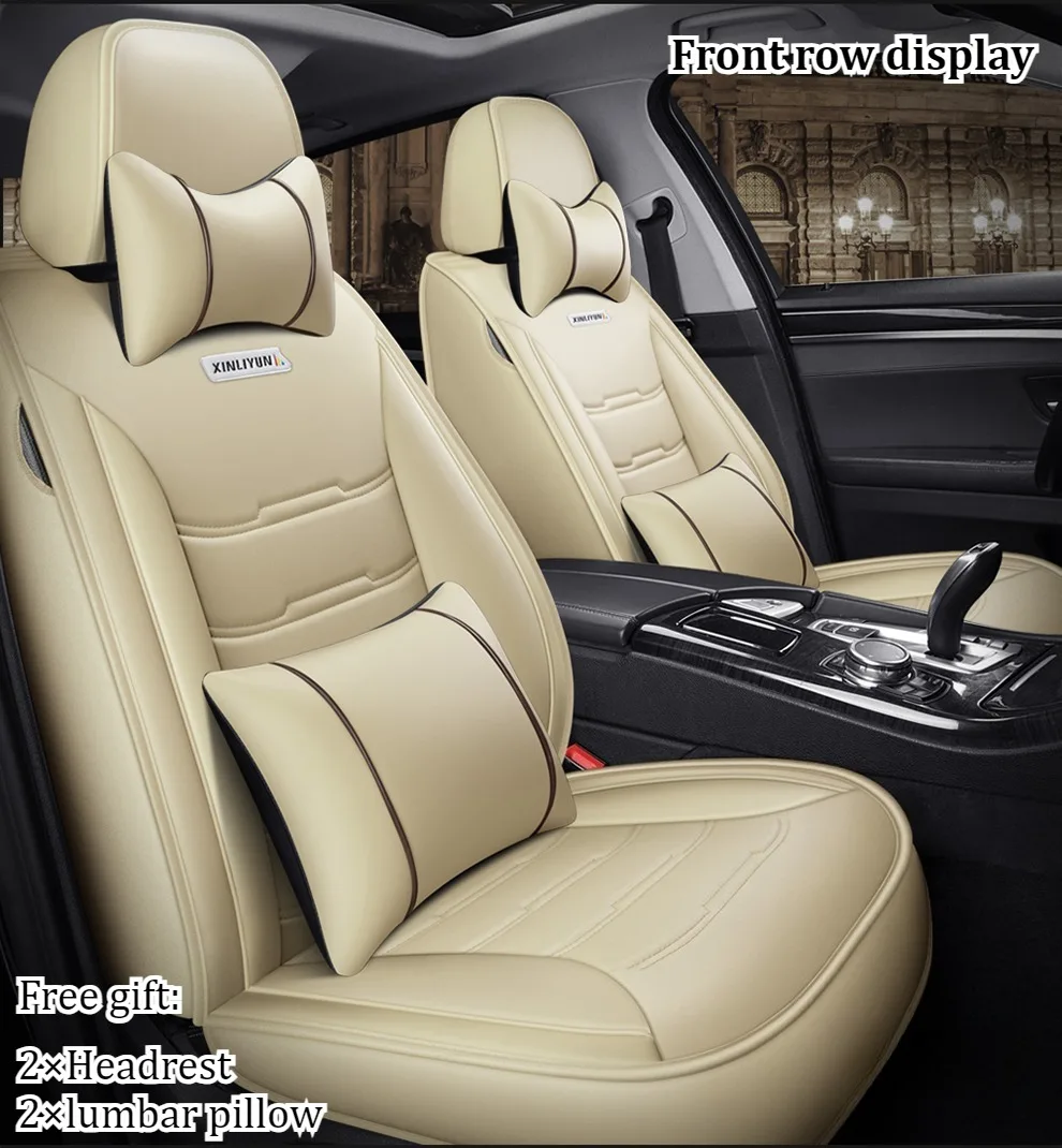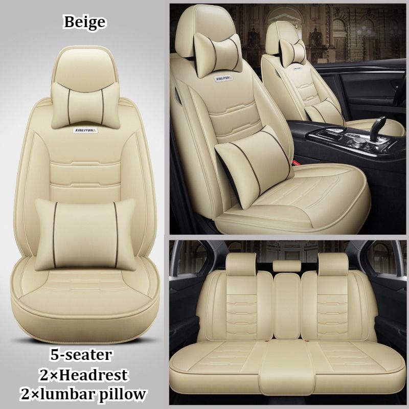 Premium PU leather car seat cover, 5-seater, Soft, comfortable, non-slip, durable, waterproof, All seasons